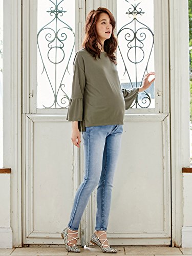Angeliebe エンジェリーベ マタニティ 授乳口付き パウダー ピーチスキン フレアースリーブ トップス 妊婦服 産前 産後 フリー カーキ 21908 21908400