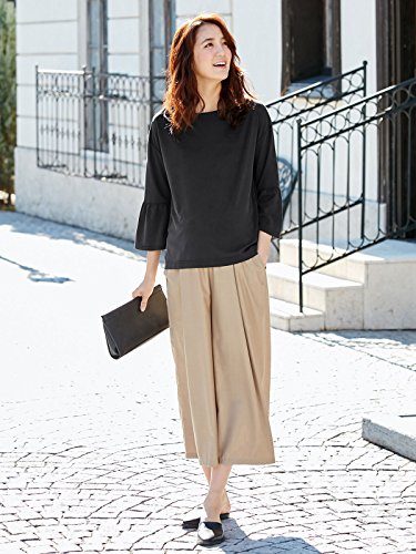 - ●【ボリュームフリルがフェミニンなアクセントに。ピーチスキンでクラス感もアップ】素材感と今年らしいデザインが魅力のトップス。なめらかでマットな質感が美しいピーチスキン素材は、カットソーの着心地の良さと布帛のような上品さを併せ持つ素材感が魅力。袖口のボリューミーなフリルデザインがトレンド感を演出。長すぎない丈感ななのでガウチョパンツなどボリュームボトムとも好相性です。