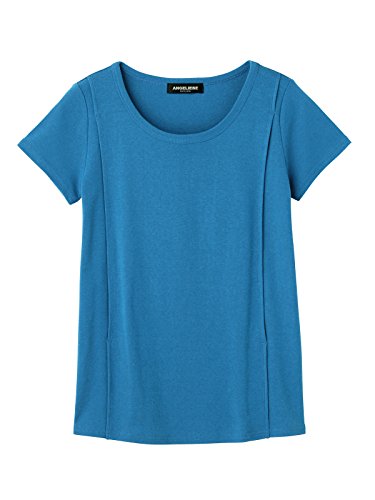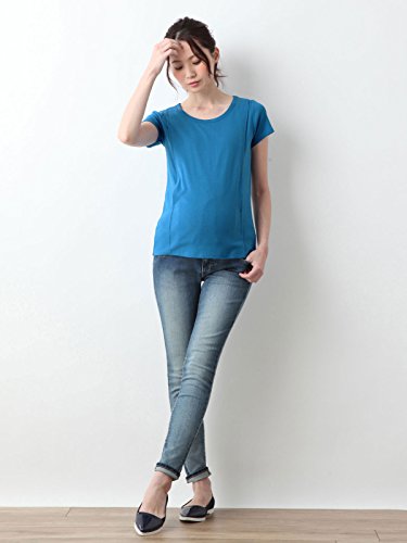 Angeliebe エンジェリーベ マタニティ 授乳口付き Tシャツ 綿混 やわらか フライス 半袖 ラウンドネック 妊婦服 産前 産後 M ~ L ブルー 21756 21756102