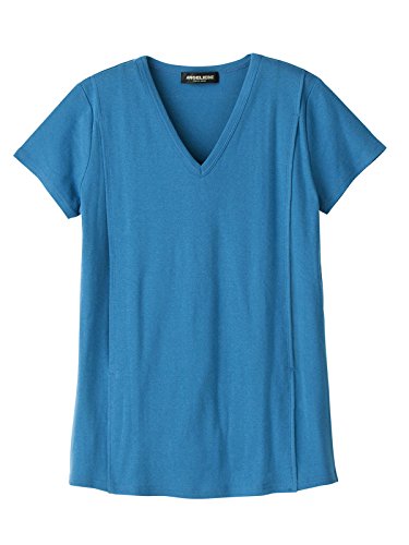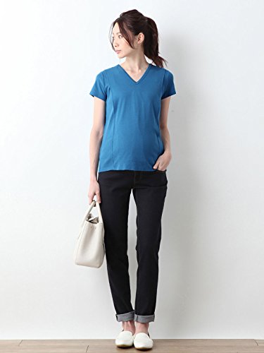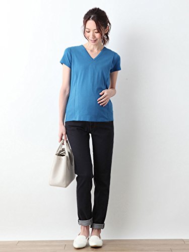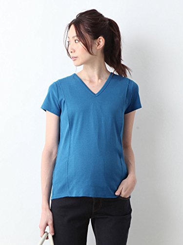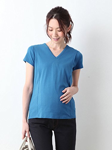 Angeliebe エンジェリーベ マタニティ 授乳口付き Tシャツ 綿混 やわらか フライス 半袖 Vネック 妊婦服 産前 産後 S ~ M ブルー 21757 21757501