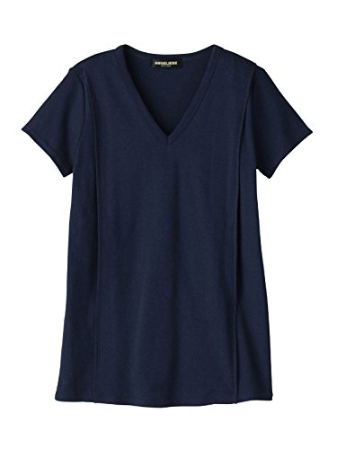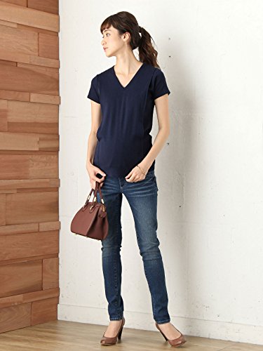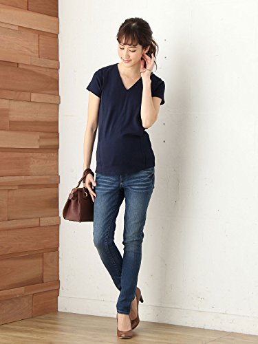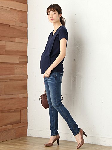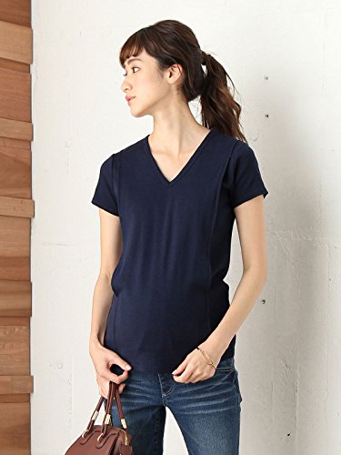 Angeliebe エンジェリーベ マタニティ 授乳口付き Tシャツ 綿混 やわらか フライス 半袖 Vネック 妊婦服 産前 産後 M ~ L ネイビー 21757 21757102