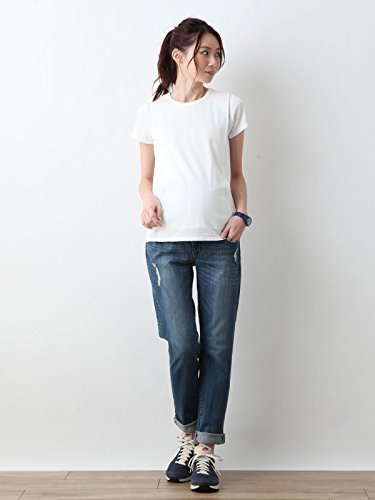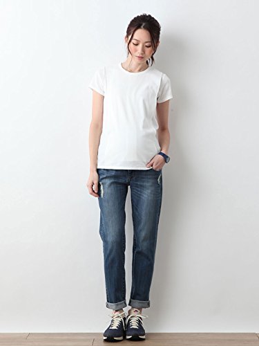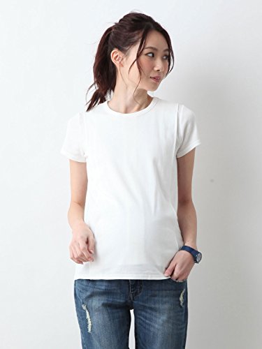Angeliebe エンジェリーベ マタニティ 授乳口付き Tシャツ 綿混 やわらか フライス 半袖 クルーネック 妊婦服 産前 産後 S ~ M ホワイト 21758 21758101
