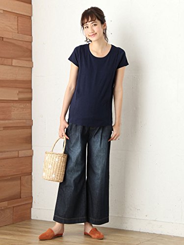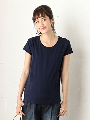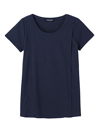 Angeliebe エンジェリーベ マタニティ 授乳口付き Tシャツ 綿混 やわらか フライス 半袖 ラウンドネック 妊婦服 産前 産後 S ~ M ネイビー 21756 21756201