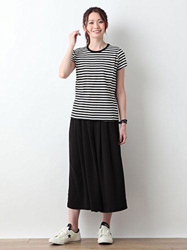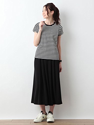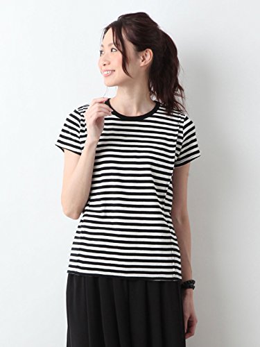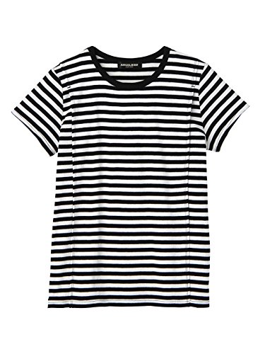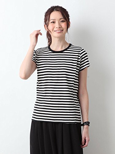 Angeliebe エンジェリーベ 産後 授乳服 Tシャツ 綿混 やわらか フライス 半袖 クルーネック 授乳ウエア フリー ブラック × オフ ボーダー 30093 30093600