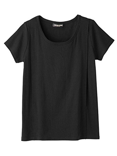 Angeliebe エンジェリーベ 産後 授乳服 Tシャツ 綿混 やわらか フライス 半袖 ラウンドネック 授乳ウエア フリー ブラック 30091 30091500