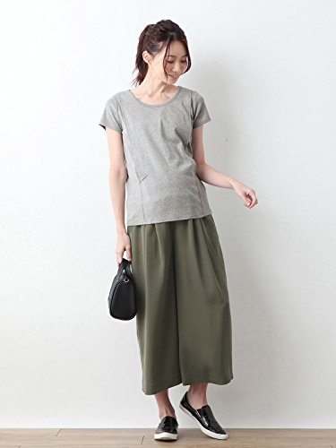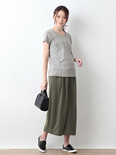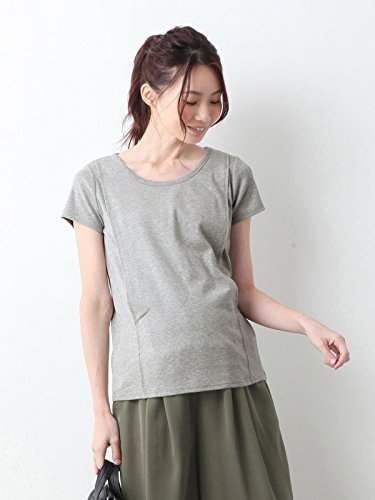 Angeliebe エンジェリーベ マタニティ 授乳口付き Tシャツ 綿混 やわらか フライス 半袖 ラウンドネック 妊婦服 産前 産後 M ~ L 杢 グレー 21756 21756402