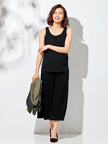 Angeliebe エンジェリーベ マタニティ 授乳口付き タンクトップ 綿混 やわらか フライス 妊婦服 産前 産後 M ~ L ブラック 21759 21759402