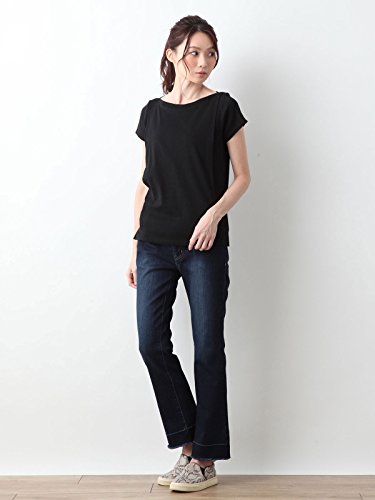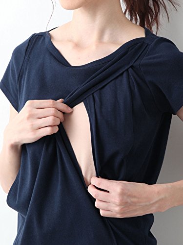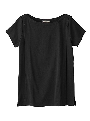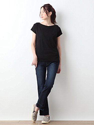 Angeliebe エンジェリーベ 産後 授乳服 Tシャツ 綿混 やわらか フライス 半袖 ボートネック 授乳ウエア フリー ブラック 30095 30095400