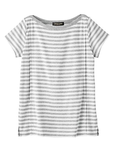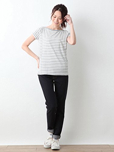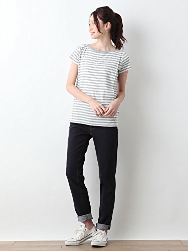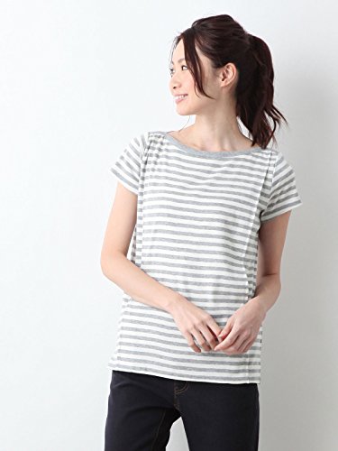 Angeliebe エンジェリーベ 産後 授乳服 Tシャツ 綿混 やわらか フライス 半袖 ボートネック 授乳ウエア フリー グレー × オフ ボーダー 30095 30095700