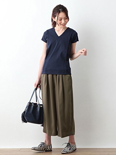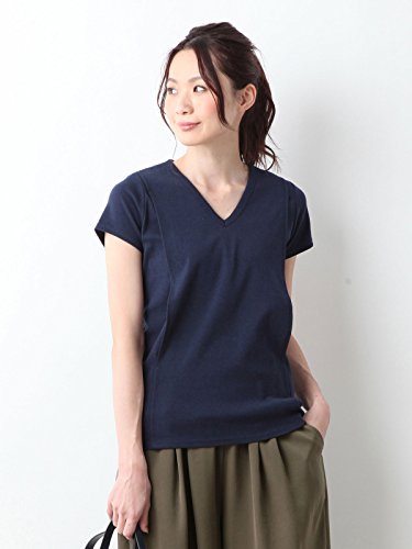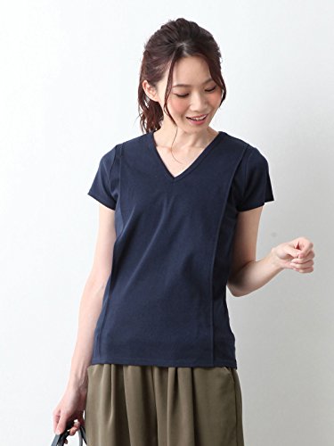 Angeliebe エンジェリーベ 産後 授乳服 Tシャツ 綿混 やわらか フライス 半袖 Vネック 授乳ウエア フリー ネイビー 30092 30092100