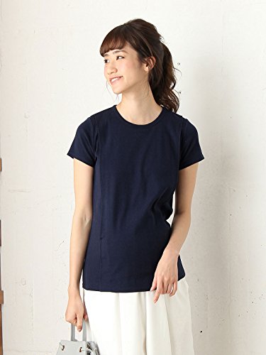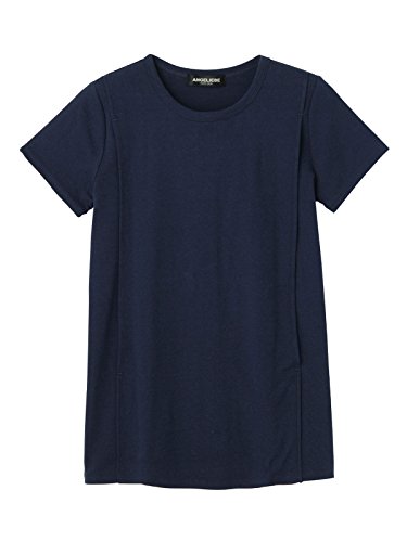 Angeliebe エンジェリーベ マタニティ 授乳口付き Tシャツ 綿混 やわらか フライス 半袖 クルーネック 妊婦服 産前 産後 M ~ L ネイビー 21758 21758502