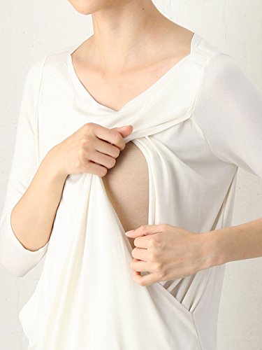 Angeliebe エンジェリーベ 産後 授乳口付き とろみ素材 ボートネック 六分袖 トップス 授乳ウエア フリー オフホワイト 30096 30096100