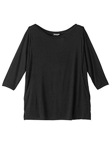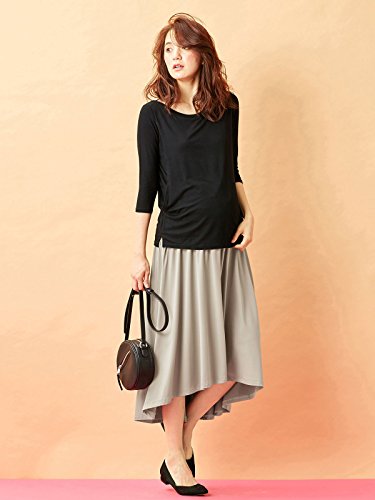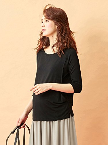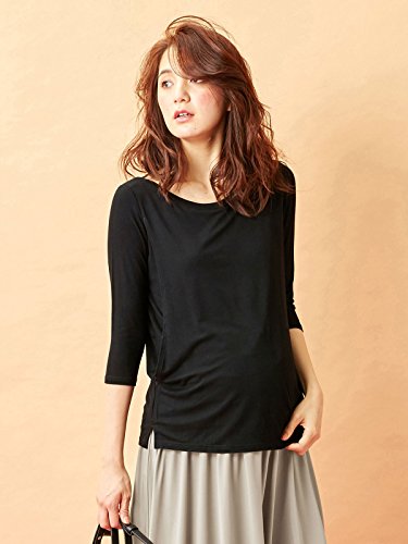 Angeliebe エンジェリーベ マタニティ 授乳口付き とろみ素材 ボートネック 六分袖 トップス 妊婦服 産前 産後 S~M ブラック 21761 21761201