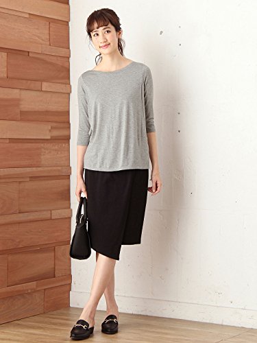 Angeliebe エンジェリーベ 産後 授乳口付き とろみ素材 ボートネック 六分袖 トップス フリー 杢グレー 30096 30096300