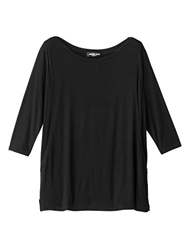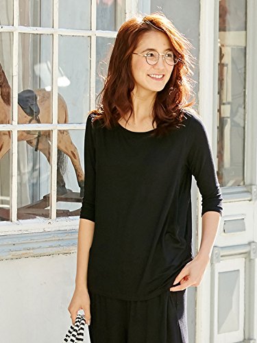 Angeliebe エンジェリーベ 産後 授乳口付き とろみ素材 ボートネック 六分袖 トップス フリー ブラック 30096 30096200