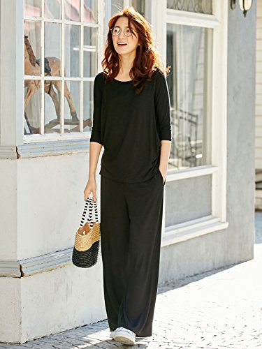 - ●【リラクシングから通勤スタイルにも。着まわしが効くシンプルトップス】落ち感がキレイなレーヨンベア天竺素材を使用。シンプルな六分袖トップスをオールマイティに使えるアイテムに仕上げました。顔まわりがすっきり見えるボートネックは、春夏のマリンスタイルにもおすすめ。