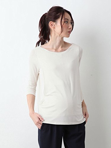 Angeliebe エンジェリーベ マタニティ 授乳口付き とろみ素材 ボートネック 六分袖 トップス 妊婦服 産前 産後 M~L オフホワイト 21761 21761102