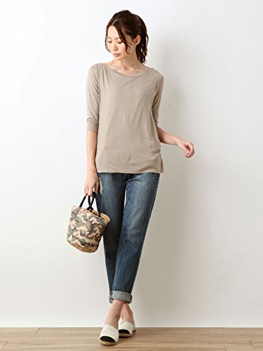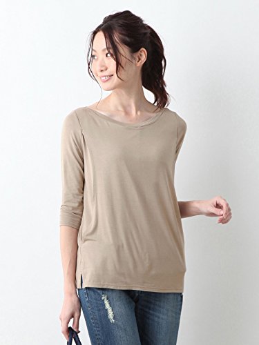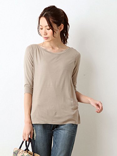 Angeliebe エンジェリーベ 産後 授乳口付き とろみ素材 ボートネック 六分袖 トップス フリー グレージュ 30096 30096400