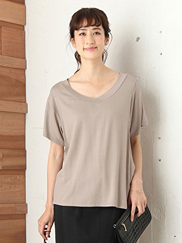 Angeliebe エンジェリーベ マタニティ 授乳口付き とろみ素材 Vネック トップス 妊婦服 産前 産後 半袖 M ~ L グレージュ 21762 21762402