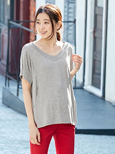 Angeliebe エンジェリーベ マタニティ 授乳口付き とろみ素材 Vネック トップス 妊婦服 産前 産後 半袖 M ~ L 杢 グレー 21762 21762302