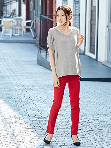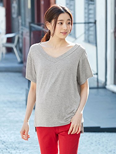 - ●【広めに開いたVネックで女性らしい印象に。通勤用にもおすすめです】シンプルな半袖トップスをオールマイティに使える上品アイテムに仕上げました。開きが大きめのVネックで女性らしさを強調。後ろ身頃が長いデザインでウエストインスタイルも楽しめ、ガウチョパンツなどのボリュームボトムとも好相性です。