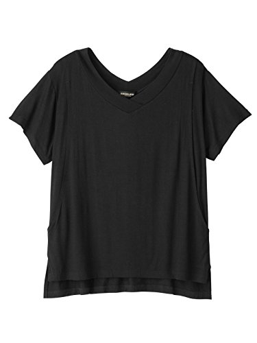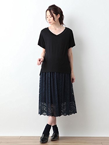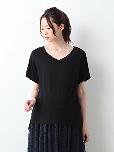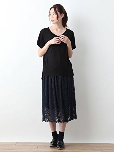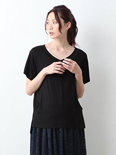 Angeliebe エンジェリーベ マタニティ 授乳口付き とろみ素材 Vネック トップス 妊婦服 産前 産後 半袖 M ~ L ブラック 21762 21762202