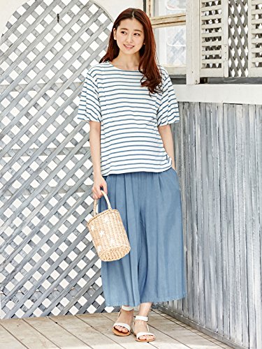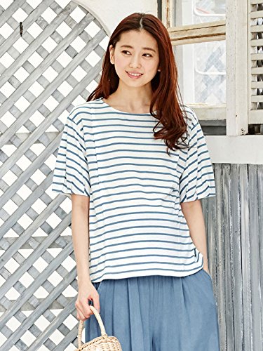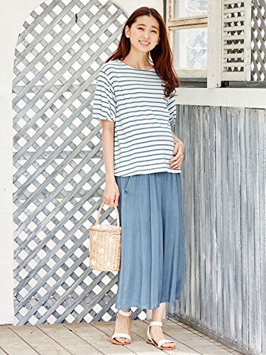 Angeliebe エンジェリーベ マタニティ 授乳口付き バルーン スリーブ ボーダー トップス 妊婦服 (a.i.n) 産前 産後 半袖 L サックス 21842 21842370