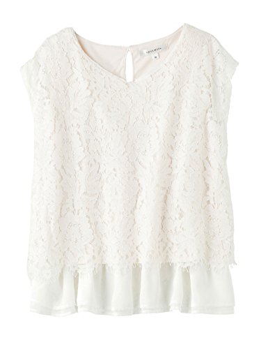 - ●【華やかリバーレースの透け感がこれからの季節にぴったり!】大柄のリバーレースが華やかなトップスは、高見え効果抜群!裾に繊細なシフォンのフリルを重ねたレイヤードデザインは着るだけでコーディネートを女性らしくランクアップしてくれます。ジャケットのインに合わせて通勤用にもおすすめです。