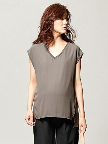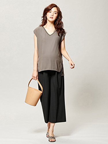 - ●【産前~産後まで使えるVネックジョーゼットノースリーブプルオーバー】レーヨン混のカットソー×シフォンの組み合わせ。深めのサイドスリットでトレンド感をプラス。表地をめくると、大きく開いた脇口から授乳できます。