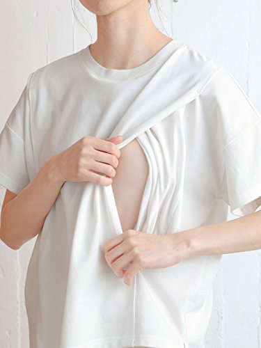 Angeliebe エンジェリーベ マタニティ 授乳口付き ビッグ Tシャツ 妊婦服 産前 産後 半袖 フリー ホワイト 21753 21753100