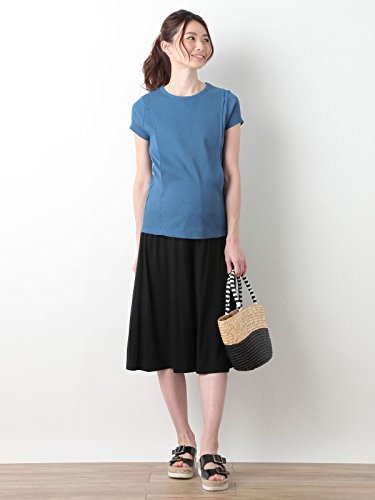 Angeliebe エンジェリーベ マタニティ 授乳口付き 半袖 リブ Tシャツ 妊婦服 産前 産後 L ブルー 21767 21767570