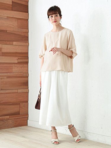 Angeliebe エンジェリーベ マタニティ 授乳口付き 五分袖 ボリューム スリーブ トップス 妊婦服 産前 産後 S ~ M ベージュ 22030 22030201