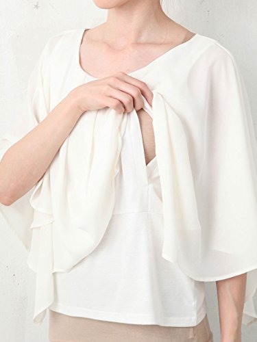 - ●【授乳時の目隠しにもなるケープデザインで今年らしい着こなしに】ケープを重ねたように見えるたっぷりとしたボリューミーデザインが印象的。肌触りのいいカットソーに透け感のあるジョーゼットを重ねているのでクラス感があります。