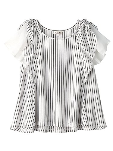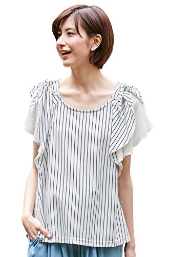 - ●【ふんわりフリル&上品ストライプでキレイめな着こなしに】これからの季節に嬉しい吸汗速乾素材を使用。さらりとした肌触りが気持ちいいプルオーバートップスです。たっぷりのフリルや肩口のリボンなどでガーリーに。ふんわり感もフェミニンなデザインですが、ストライプなので甘くなり過ぎず、今年らしい着こなしが楽しめます。