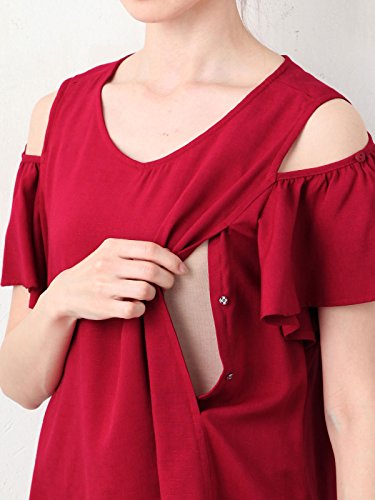 - ●【産前~産後まで使える授乳口付き2WAYオープンショルダートップス】生地の表面に表情のあるさらりとした肌触りの気持ちの良い生地。首後ろの涙開きでバックスタイルにもアクセントを。両サイドにスナップボタンタイプの授乳口が付いています。ゆったりと広がるAラインシルエットがお腹をカバーしてくれます。トレンドカラーのラインナップも注目です。