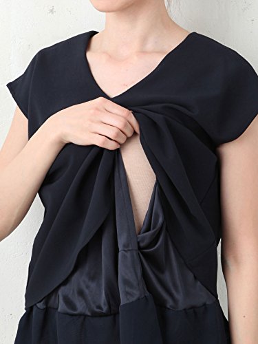 Angeliebe エンジェリーベ マタニティ 授乳口付き ストレッチ ジョーゼット フレンチ スリーブ トップス 妊婦服 産前 産後 S ~ M ネイビー 22049 22049201