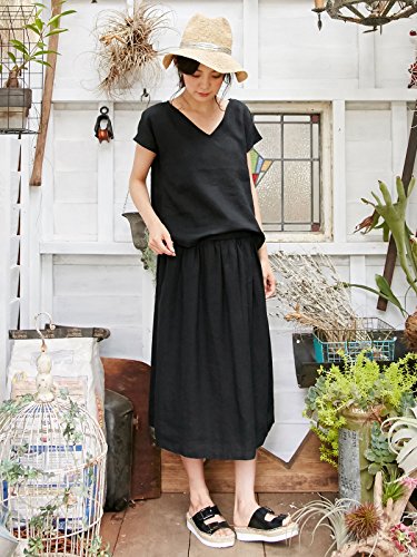Angeliebe エンジェリーベ マタニティ 授乳口付き リネン Vネック プルオーバー 妊婦服 産前 産後 S ~ M ブラック 22042 22042401