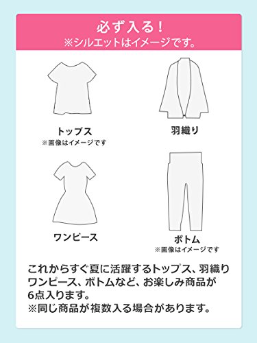 - ●毎回大好評!期間&数量限定「夏の福袋」。これからすぐ夏に活躍する、アイテムが6点入ったお買い得福袋。紫外線や冷房から守ってくれる「羽織もの」「トップス」「ボトム」「ワンピース」など、25,000円相当のお楽しみ商品が6点入ります!