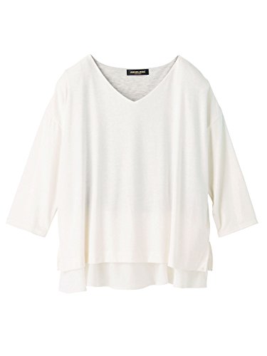 お腹まわりをさりげなくカバーしてくれる効果もあります。トレンドのきれいな開きのVネックですっきりとした印章に。