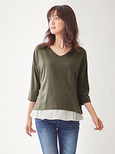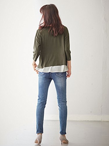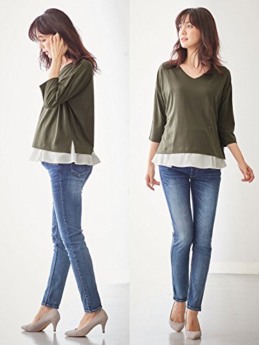 Angeliebe エンジェリーベ マタニティ 授乳口付き 裾フレアー Vネック トップス 妊婦服 産前 産後 フリー カーキ 22163 22163300