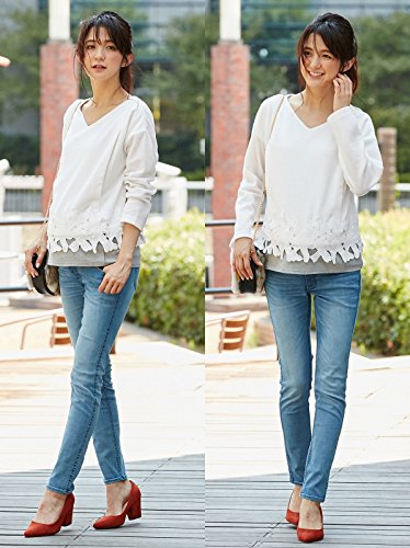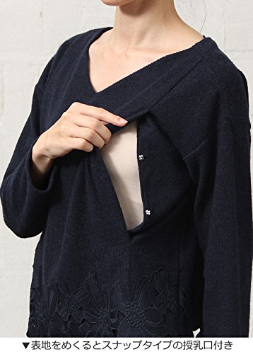 - ●【産前~産後まで使える授乳口付き裾カットワークレーストップス】上品な細リブ風の生地ですっきりシルエットに。立体感のある大ぶりなレースが高級感をプラス。表地をめくるとスナップタイプの授乳口が付いてます。レースを引き立ててすっきり見えるVネックもポイント。前身頃には肌あたりの良い裏地がついているので着心地も◎。