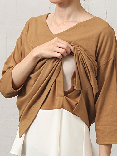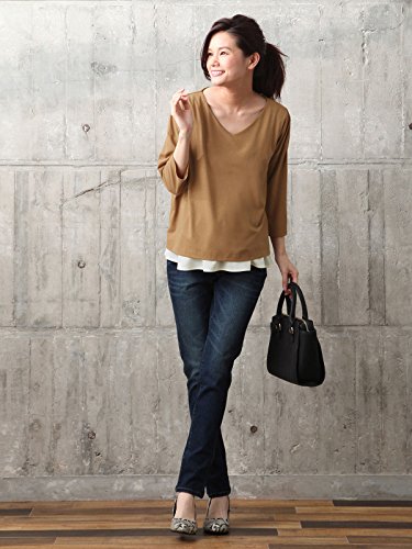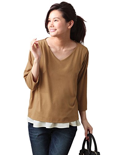Angeliebe エンジェリーベ マタニティ 授乳口付き 裾フレアー Vネック トップス 妊婦服 産前 産後 フリー キャメル 22163 22163100