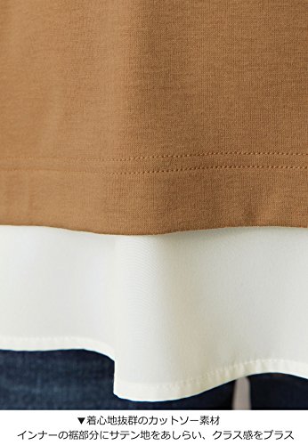 - ●【大人気のアイテムが今年らしいカラーで再登場!】大人気デザインが今年らしいカラーで登場です。裾のサテンフリルで、レイヤード風スタイルが完成。お腹まわりをさりげなくカバーしてくれる効果もあります。トレンドのきれいな開きのVネックですっきりとした印章に。肌に当たる部分はカットソー生地になっていて着心地も抜群です。
