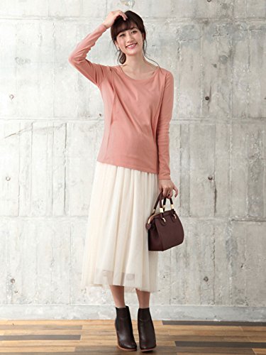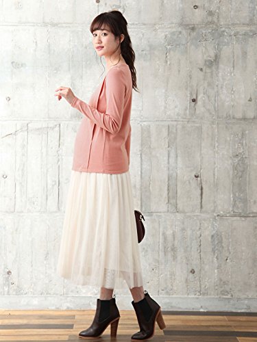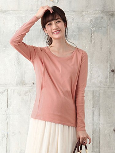 Angeliebe エンジェリーベ マタニティ 授乳口付き 綿混 やわらか フライス ラウンドネック Tシャツ 妊婦服 産前 産後 長袖 M ~ L ピンク 22069 22069702