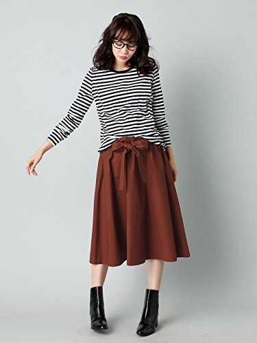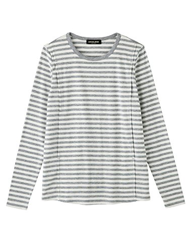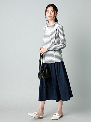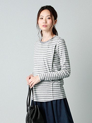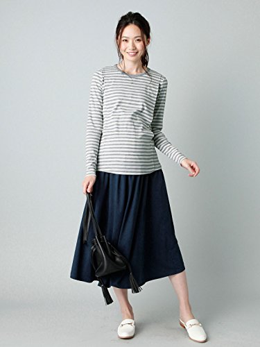 Angeliebe エンジェリーベ マタニティ 授乳口付き 綿混 やわらか フライス クルーネック Tシャツ 妊婦服 産前 産後 長袖 S ~ M グレー × オフボーダー 22070 22070601