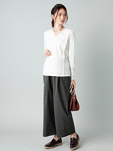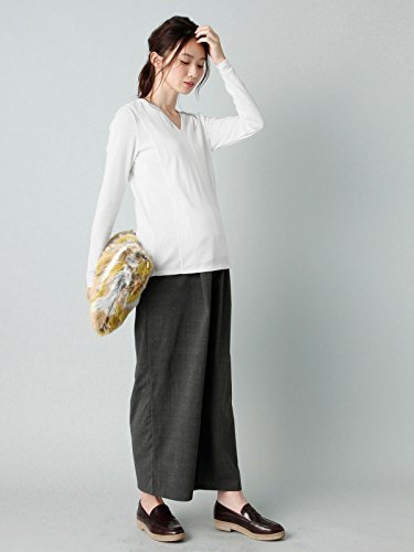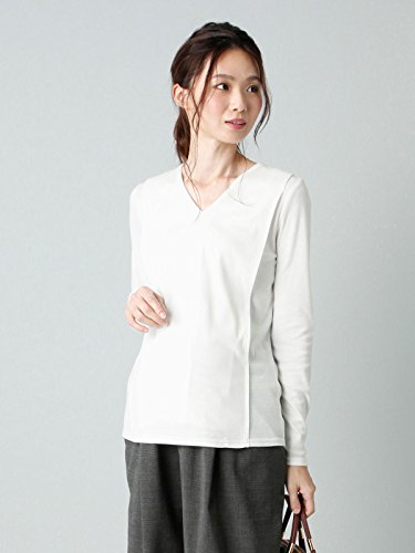 Angeliebe エンジェリーベ マタニティ 授乳口付き 綿混 やわらか フライス Vネック Tシャツ 妊婦服 産前 産後 長袖 S ~ M オフホワイト 22072 22072201