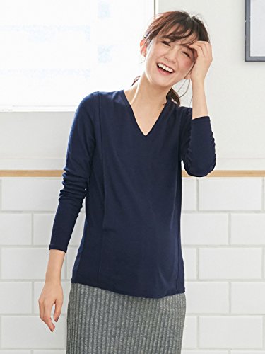 Angeliebe エンジェリーベ マタニティ 授乳口付き 綿混 やわらか フライス Vネック Tシャツ 妊婦服 産前 産後 長袖 S ~ M ネイビー 22072 22072301