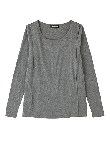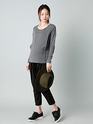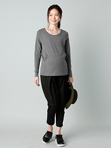 Angeliebe エンジェリーベ マタニティ 授乳口付き 綿混 やわらか フライス ラウンドネック Tシャツ 妊婦服 産前 産後 長袖 M ~ L 杢チャコール 22069 22069402