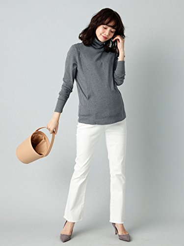 Angeliebe エンジェリーベ マタニティ 授乳口付き 綿混 やわらか フライス タートルネック Tシャツ 妊婦服 産前 産後 長袖 S ~ M 杢チャコール 22071 22071401