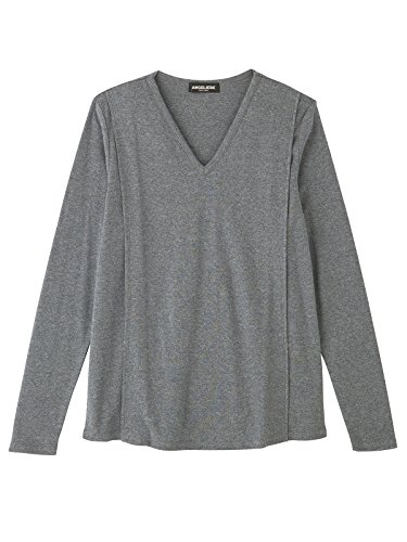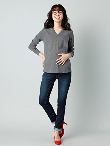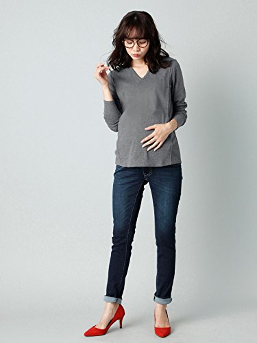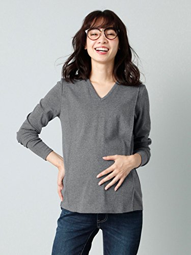 Angeliebe エンジェリーベ マタニティ 授乳口付き 綿混 やわらか フライス Vネック Tシャツ 妊婦服 産前 産後 長袖 M ~ L 杢チャコール 22072 22072402